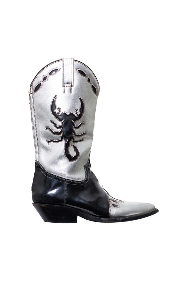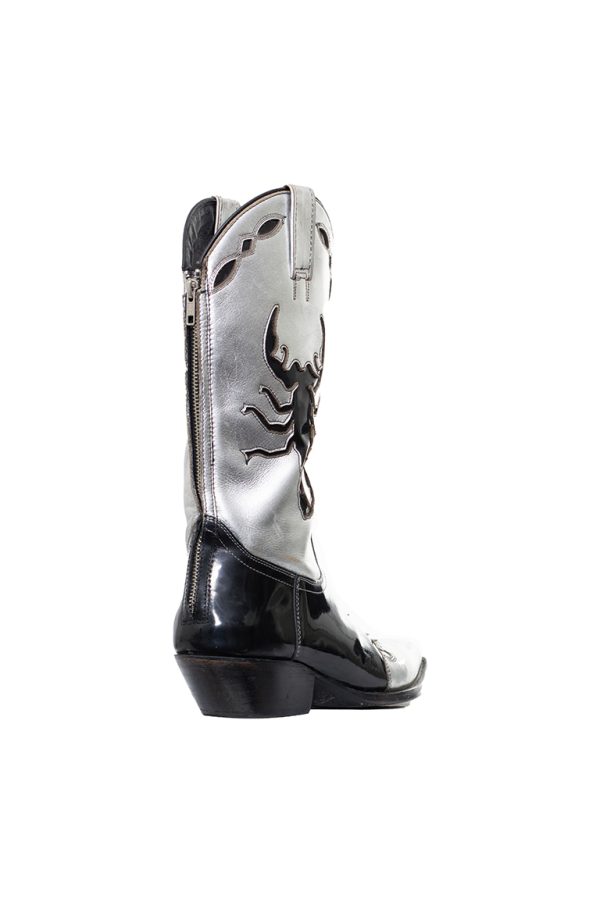 negras con detalles plateados, escorpion en laterales, terminado en punta, tacon