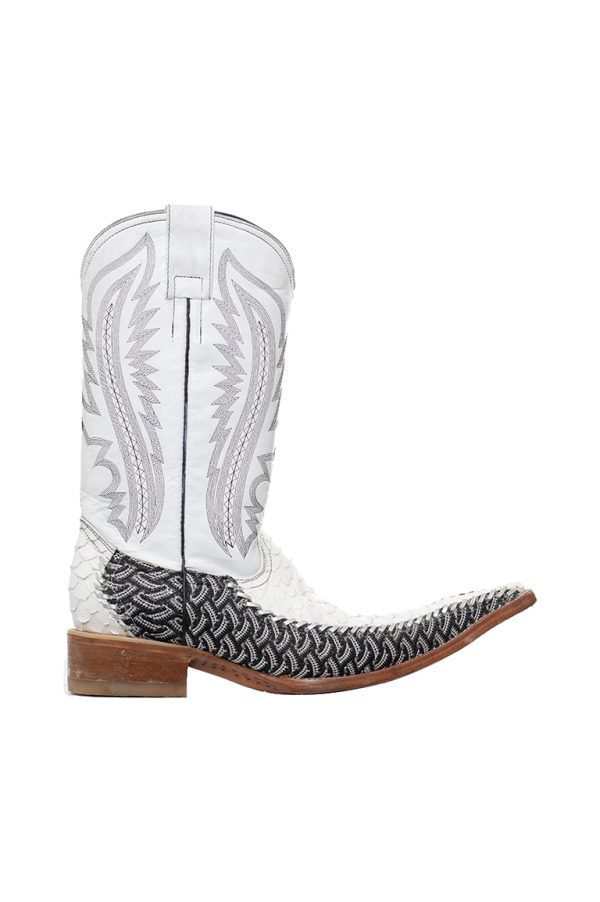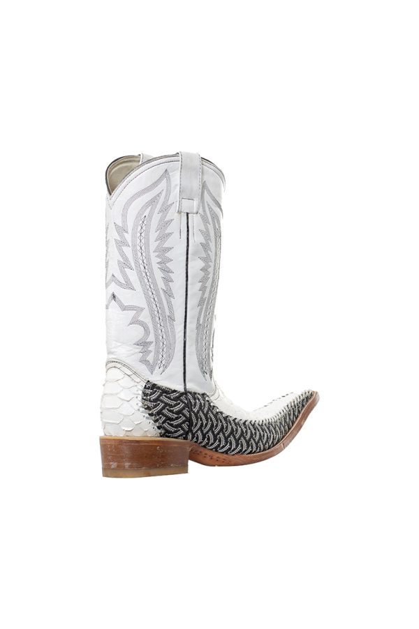 blancas, bordados en negro/plateado, tejido negro/gris a los laterales, terminado en punta